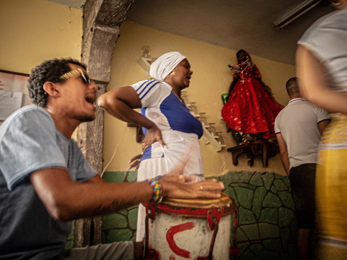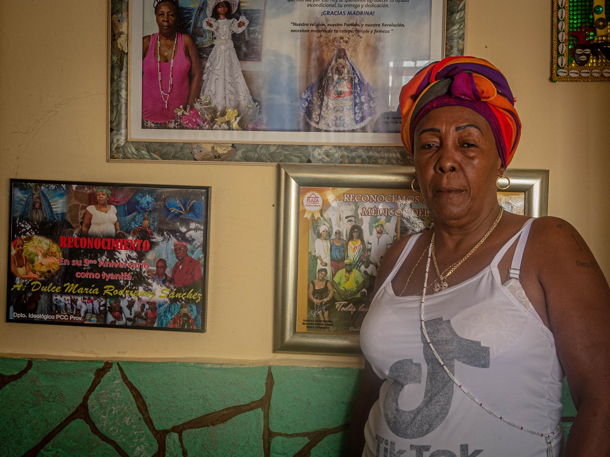 De vez en cuando procura también escapar de la rutina. “Me gusta salir a pasear con mi esposo y tomarnos una cerveza o bailar en algún club. Yo lo mismo canto y bailo rumba, casino o bolero, que alguna música moderna. Me gusta la fiesta y la diversión, como a todo el mundo”. Su orgullo, su mayor mérito es la comunidad de ahijados y seguidores que la adoran. Sus vecinos, su familia tanto religiosa como de sangre. “Para mí las ceremonias son sagradas, en todo el sentido de la palabra. Cuando les canto a las divinidades lo hago desde el corazón”, dice Dulce María sonriendo. La nieta ha llegado a despedirse, se nota la complicidad entre ellas. Una sabe que en la vida de la abuela la otra tiene su refugio.
