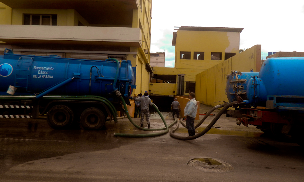 El 17 de enero se inundaron 17 sótanos y se contaminaron 17 cisternas en los barrios cercanos a la avenida Malecón. Eduardo Brey, director adjunto de la Empresa de Saneamiento Básico de La Habana, calcula que el día 23 aumentaron los sótanos y las cisternas inundados, porque el agua subió un poco más. El domingo 24, sobre la una de la tarde, su equipo de camiones de alta presión drenaba el agua del sótano ubicado en el Centro de Negocios de 1ra y B.
