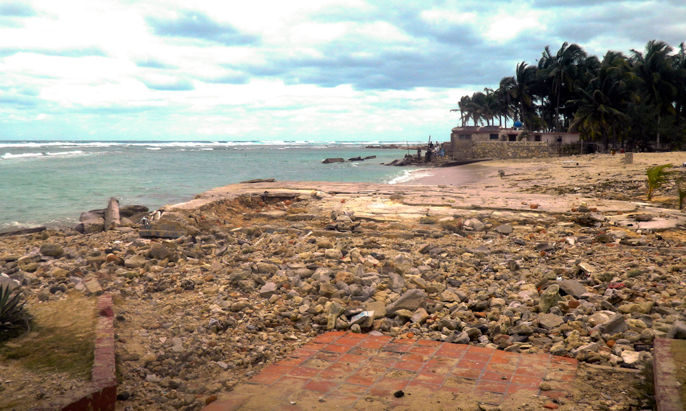 La evolución de su zona costera se puede resumir diciendo que los eventos meteorológicos han sido allí tan fuertes que los oleajes han socavado sus calles. Nadie ha retirado de la costa los restos del vial y de las casas que se han derrumbado a través de los años. El área de baño y de sol está llena de cimientos y escombros. Las condiciones estéticas de la playa son deprimentes.