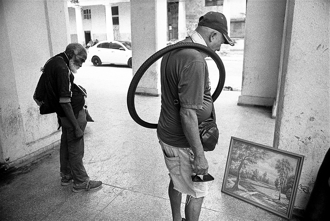 Frascos de perfume vacíos, ropa de uso, algún que otro zapato ya gastado, mustios objetos decorativos, piezas de plomería de segunda mano, páginas de revistas para adultos, todo ese compendio forma parte de la cambiante geografía de estas calles. Productos modificados, alterados por los vendedores para cumplir otra función, desde vasos hechos con botellas de cristal hasta un rastrillo de jardinería utilizado como percha de ropa. Estos mercaderes cubanos han cambiado la geografía social de estos lugares con una avalancha de productos impensables.
