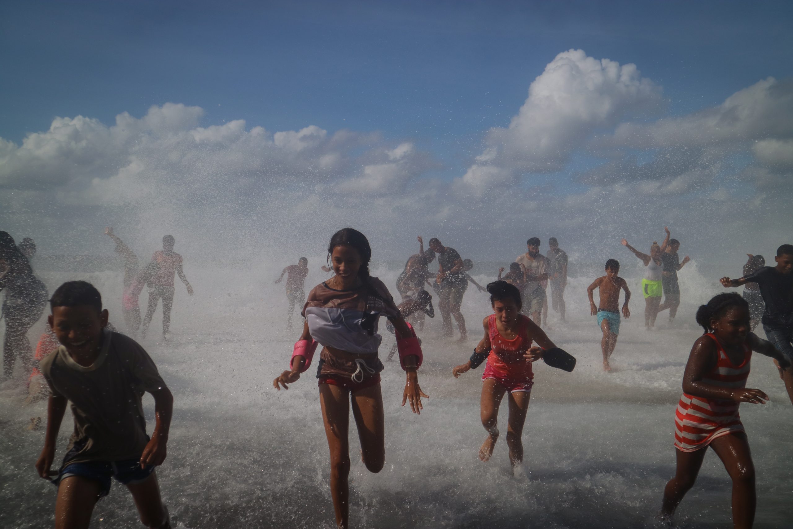 Ese día un grupo de habitantes de La Habana, cercanos a la zona del malecón, encontraron un medio de recreación en las olas generadas por el huracán en el litoral norte, que impactaban en el muro e inundaban la avenida. Estas personas se encontraban en su mayoría sin fluido eléctrico en sus hogares y con una débil cobertura de telefonía móvil, además de las dificultades para el acceso a Internet.