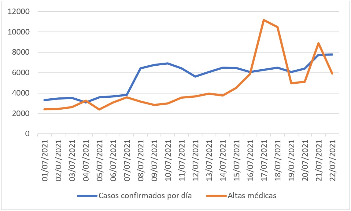 No obstante, desde el 8 de julio también se ha producido un incremento en la cantidad de casos diarios.
