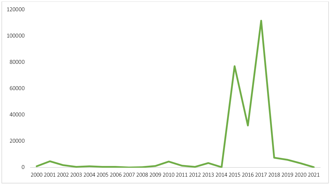 Paralelamente, la Isla ha recibido financiamiento internacional como parte de programas destinados a apoyar la transición energética en países en desarrollo. De 2000 a 2021, el monto de esta ayuda ascendió a 256.480.000 USD. Sin embargo, este financiamiento no es estable y las cantidades varían entre un año y otro.