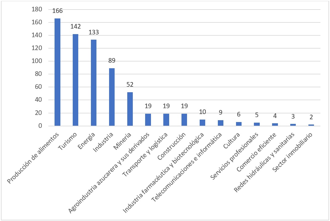 Con respecto a la inversión extranjera, Cuba reformó su Cartera de Oportunidades de Negocios a fines de 2021. Actualmente, el país cuenta con 678 proyectos y un monto de inversión valorado en, aproximadamente, 12 500 millones de dólares. La mayoría de los proyectos se encuentran enfocados en la producción de alimentos (24.5 %), seguido por el turismo (20.9 %), el sector energético (19.6 %) y la industria (13.1 %).