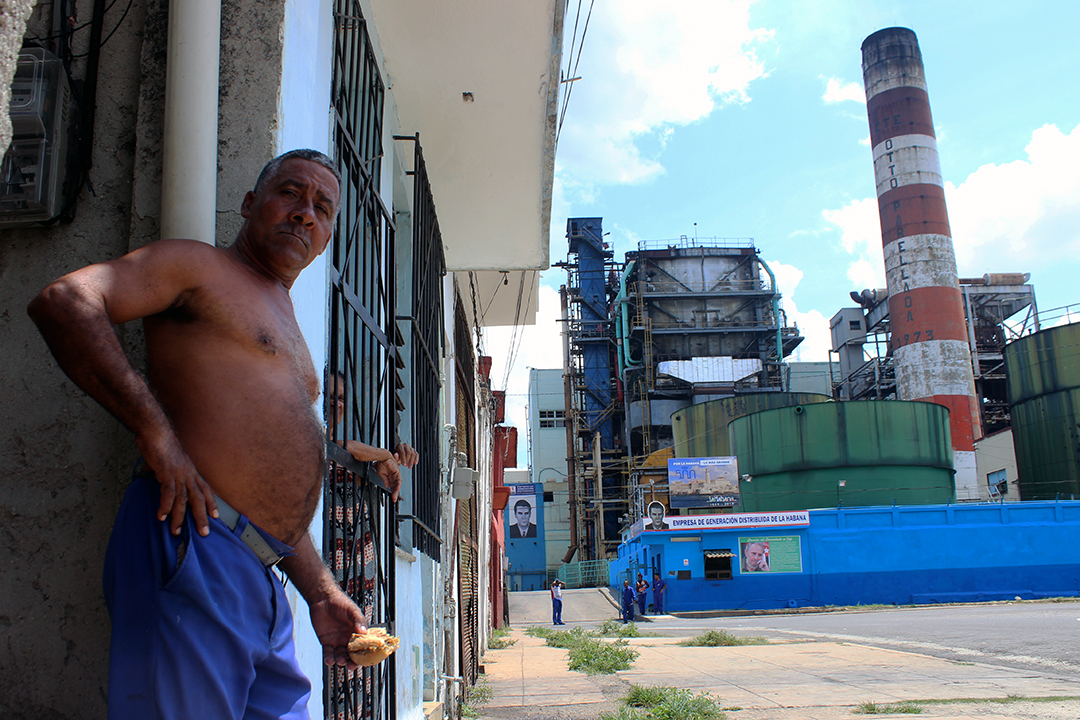 “Yo vivo aquí y trabajo en la planta hace tiempo, así que ya me acostumbré al ruido. No recuerdo ningún accidente, pero sí algunos escapes de gases… y cuando hay roturas y la caldera tiene que soltar presión es cuando las válvulas suenan más. En ese caso hay que aguantar hasta que termine, porque la planta no se puede apagar. Nosotros estamos subordinados a la Unión [Eléctrica de Cuba], solo ellos deciden si la planta se apaga y eso no sucede casi nunca…, por más que moleste a los vecinos”.