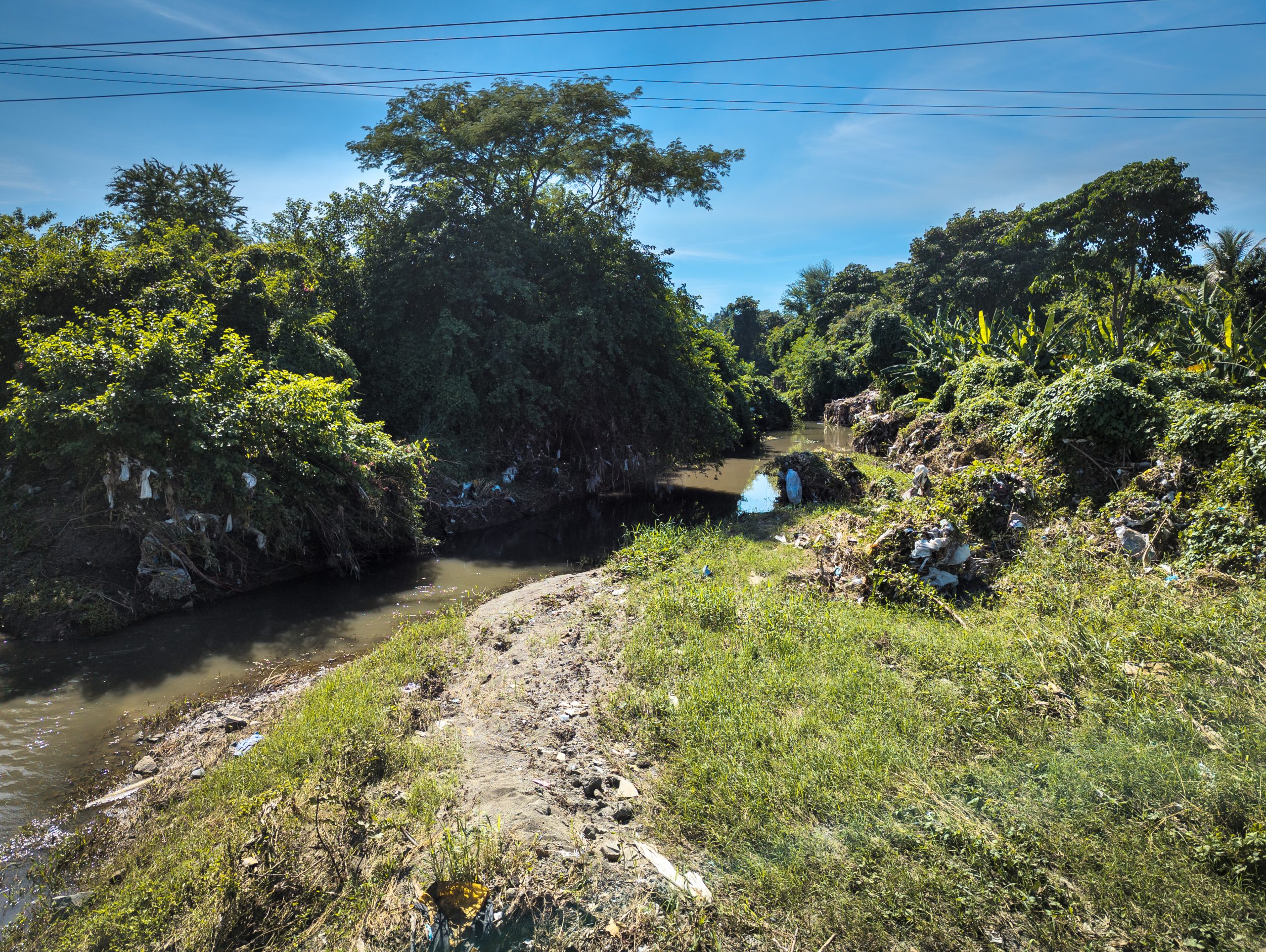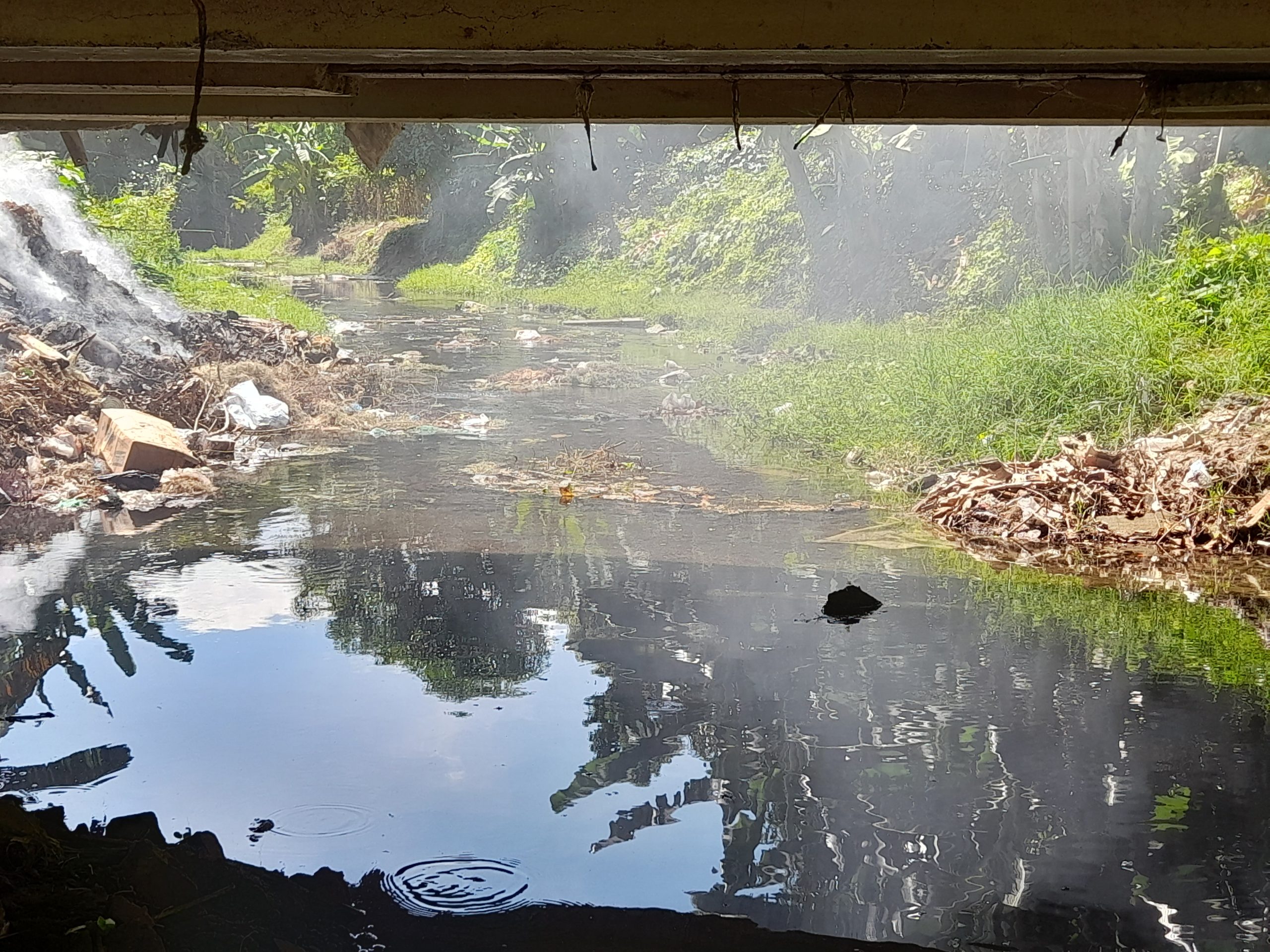 Aguas abajo la situación no mejora. En el puente del reparto Marimón el mal olor es insoportable. A un costado, aguas albañales se vierten al cauce desde tres grandes tubos. Una nube de humo por la quema de una montaña de residuales sólidos nos esperaba en la orilla.