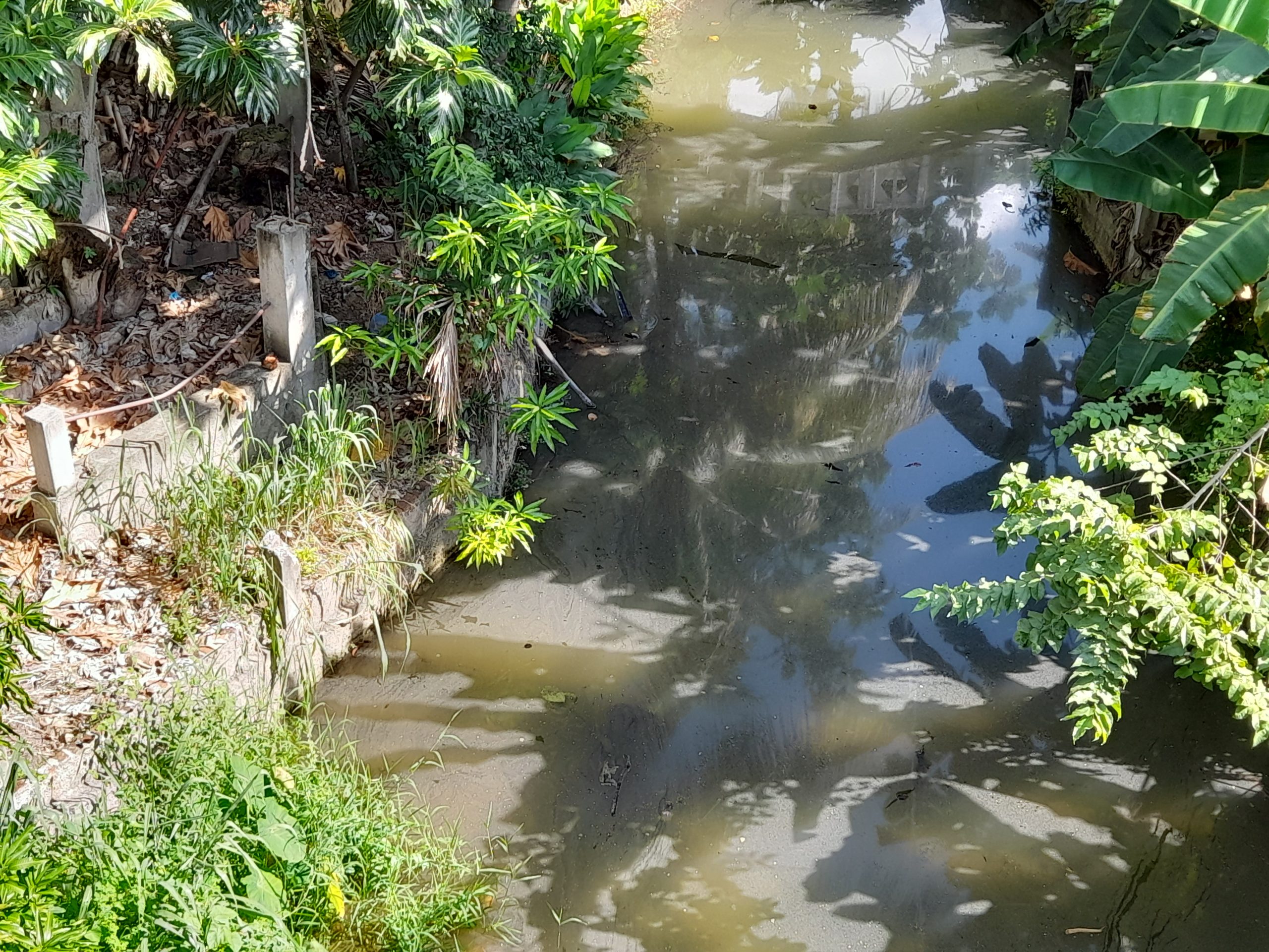 Aguas arriba descargan los residuales líquidos del Centro Genético Porcino. Del otro lado del puente, en sentido contrario, se ubica una pequeña hilera de casas. Una vecina comenta que ellos no usan esas aguas para nada porque todos saben que ahí van a dar las aguas del Porcino.