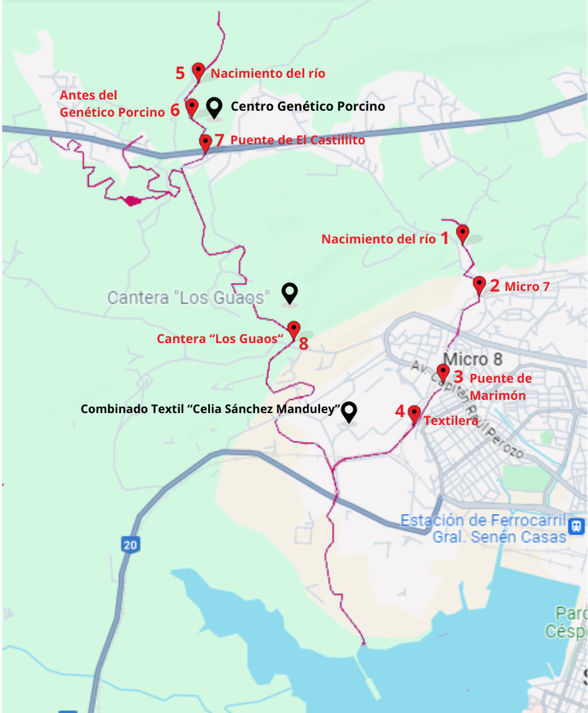 Las corrientes de ambos ríos bordean el Combinado Textil “Celia Sánchez Manduley” justo antes de unirse en un solo cauce. Desde hace años, la Textilera, como se le conoce en la zona, se encuentra con menos de un 60% de su capacidad instalada en funcionamiento. Por eso han arrendado algunos espacios a varias pequeñas industrias y almacenes que contaminan en menor o mayor medida. Dentro de estas empresas se encuentran la Distribuidora Suchel, la Fábrica de Chancletas Playeras, la Base Mecánica ESTIL, la Fábrica de Tabacos, la Empresa de Servicios Empresariales y la Distribuidora Combell.