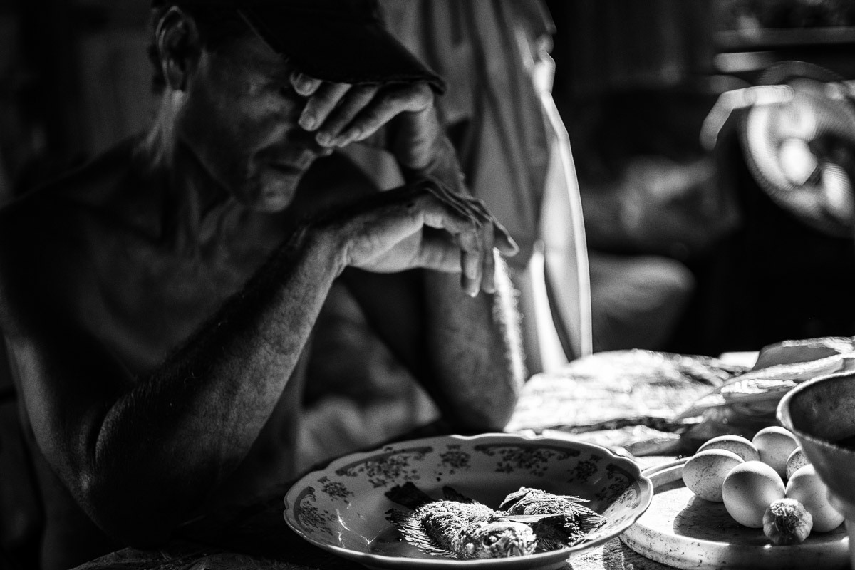 Vive con su hijo, Papelito, aficionado a la pesca. Suele ir de vez en cuando a la presa que está frente a la casa, un pequeño embalse construido por un vecino en la década del 90, cuando se impulsaron los planes de acuicultura local. Lleva anzuelo, lombrices de tierra y un trasmallo prestado. “Es mejor comerse el pescado fresco. Aunque demores más y pesques menos”, dice Papelito.