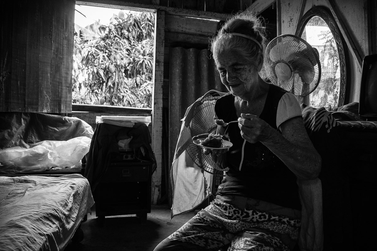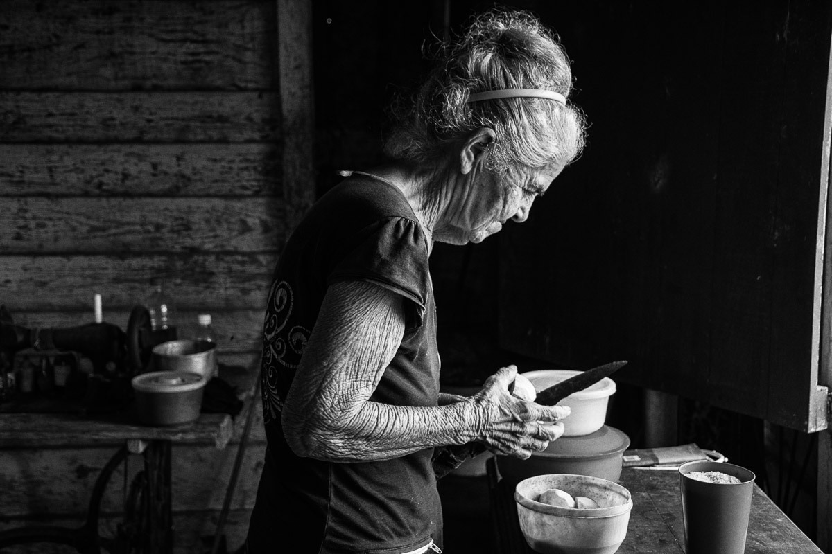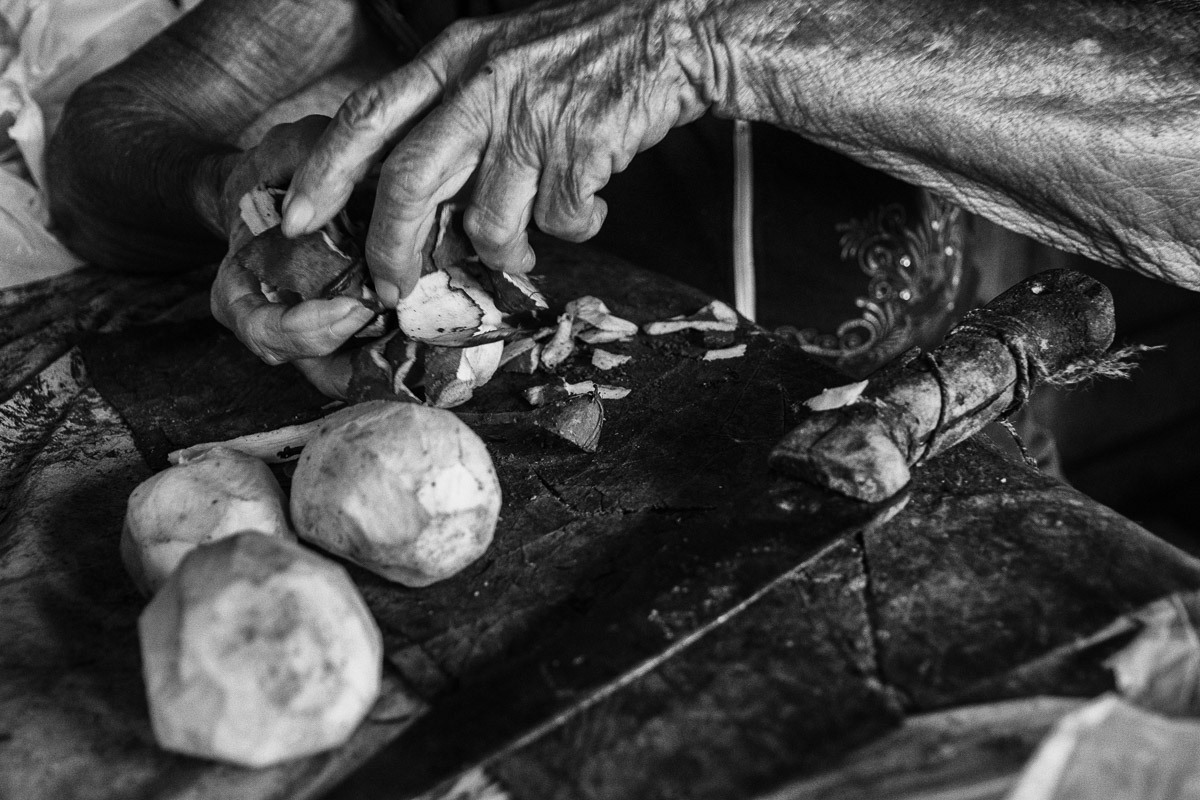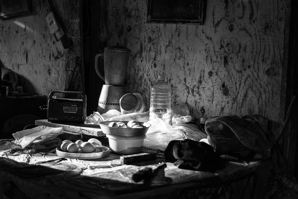 Ella está pendiente de las nubes oscuras. Extiende cubiertas de nailon, dispone cacerolas y vasijas sobre muebles y piso de cemento pulido, por si comenzara a llover. Es apenas media mañana, pero así se quedarán el resto del día. Bebe el último sorbo de café hecho al amanecer. Un pan, normado al día por la libreta de abastecimiento, fue su desayuno, junto a unos huevos revueltos y agua con azúcar prieta. Por suerte, tiene cinco gallinas criollas que ponen unos huevos muy colorados. “Tal vez por comer tanto cundiamor”, opina.